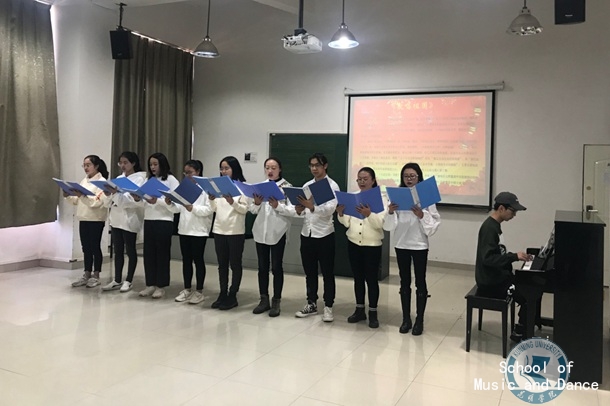 员工第二党支部的党员演唱《歌唱祖国》